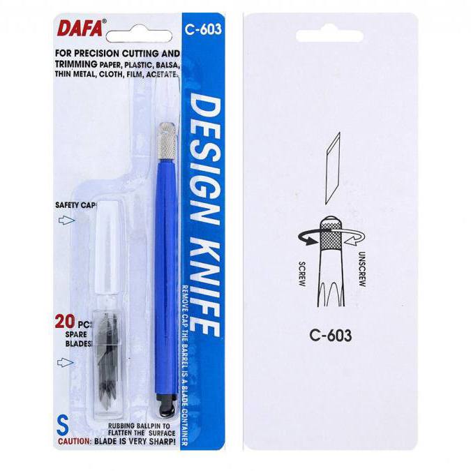 Nož za natančno rezanje in obrezovanje papirja, plastike, balze, tanke kovine, tkanine, filma, acetata.