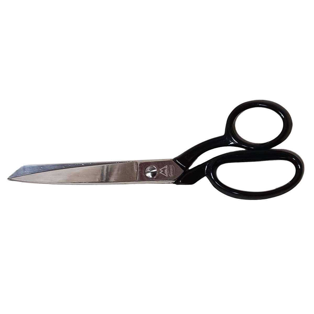Krojaške kovinske škarje velikosti 8" (200 mm), ravne, tipa wiss, spodnja konica škarje v špic, zgornja konica kriva.