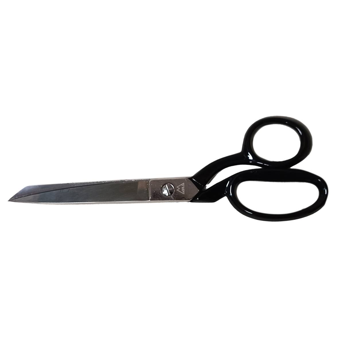 Krojaške kovinske škarje velikosti 9" (230 mm), ravne, tipa wiss, spodnja konica škarje v špic, zgornja konica kriva.