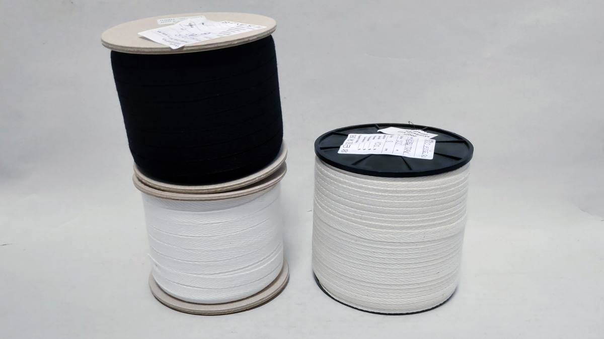 Bombažni trak keper, širine 8 mm. Cena velja za cel kolut na katerem je 100 m traku. Na voljo v beli, natur in črni barvi.