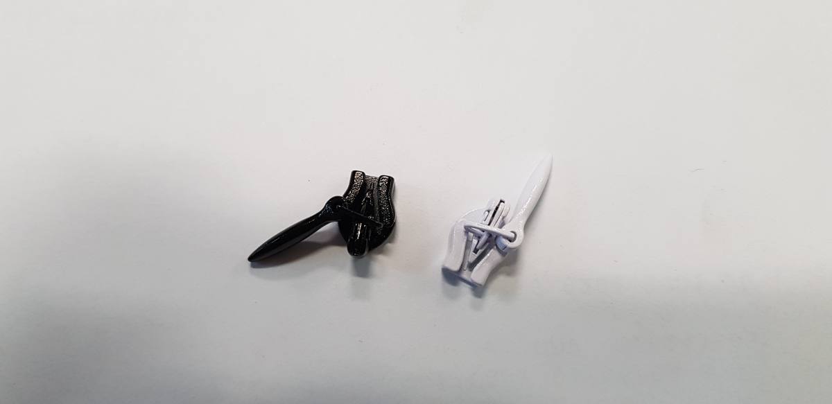 Ključek je namenjen za uporabo pri spiralni zadrgi na metre - MODEL SKRITA - NEVIDNA. Njegova debelina je 4 mm, zato tudi ustreza skriti zadrgi debeline 4 mm. Na voljo v beli ali črni barvi.