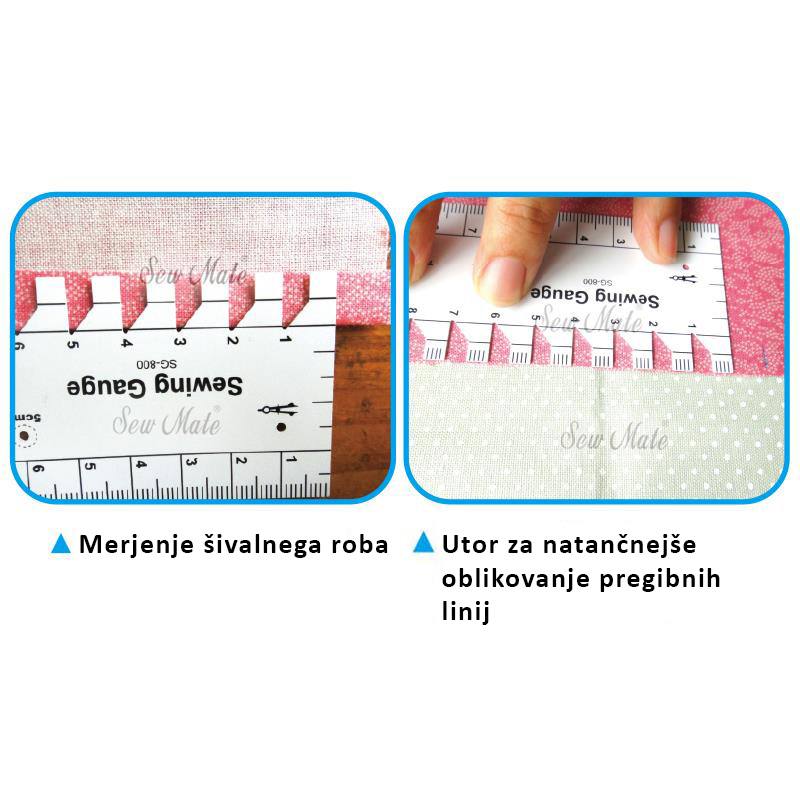 Merilo za šivanje in merilo gumbnic Sew Mate (metrična različica, št. artikla SG-800) je nepogrešljivo orodje za vse šivilje in ustvarjalce. Zasnovano za natančno merjenje dodatkov za šive, prešivanje in pletenje, omogoča hitro in preprosto določanje mer gumbnic. Njegova praktična velikost in trpežna kovinska zasnova zagotavljata dolgotrajno uporabo ter enostavno shranjevanje v šivalni škatli.