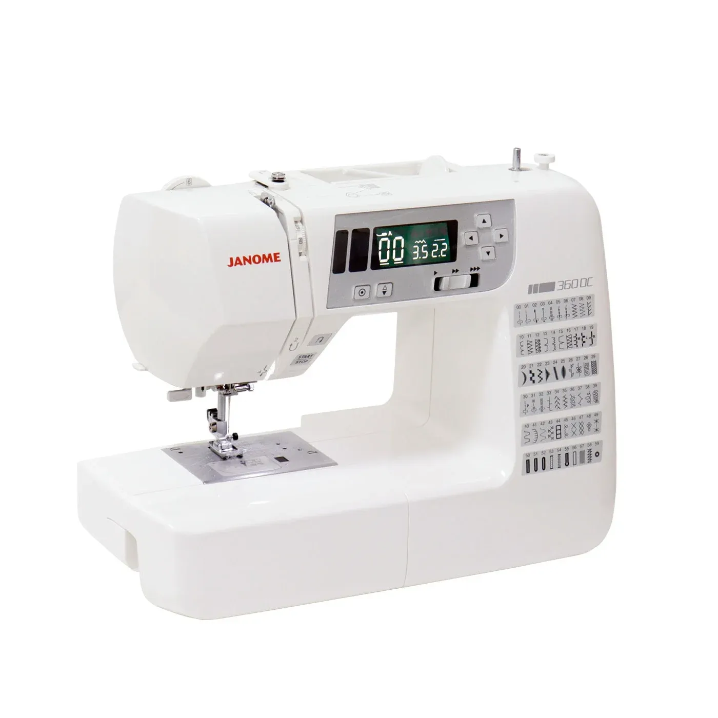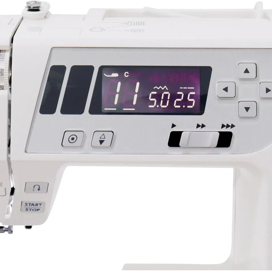 Moderni multifunkcionalni šivalni stroj opremljen z LCD zaslonom, ki vas obvešča o izbiri programov in vam priporoča primerno tačko za izbrani šiv.