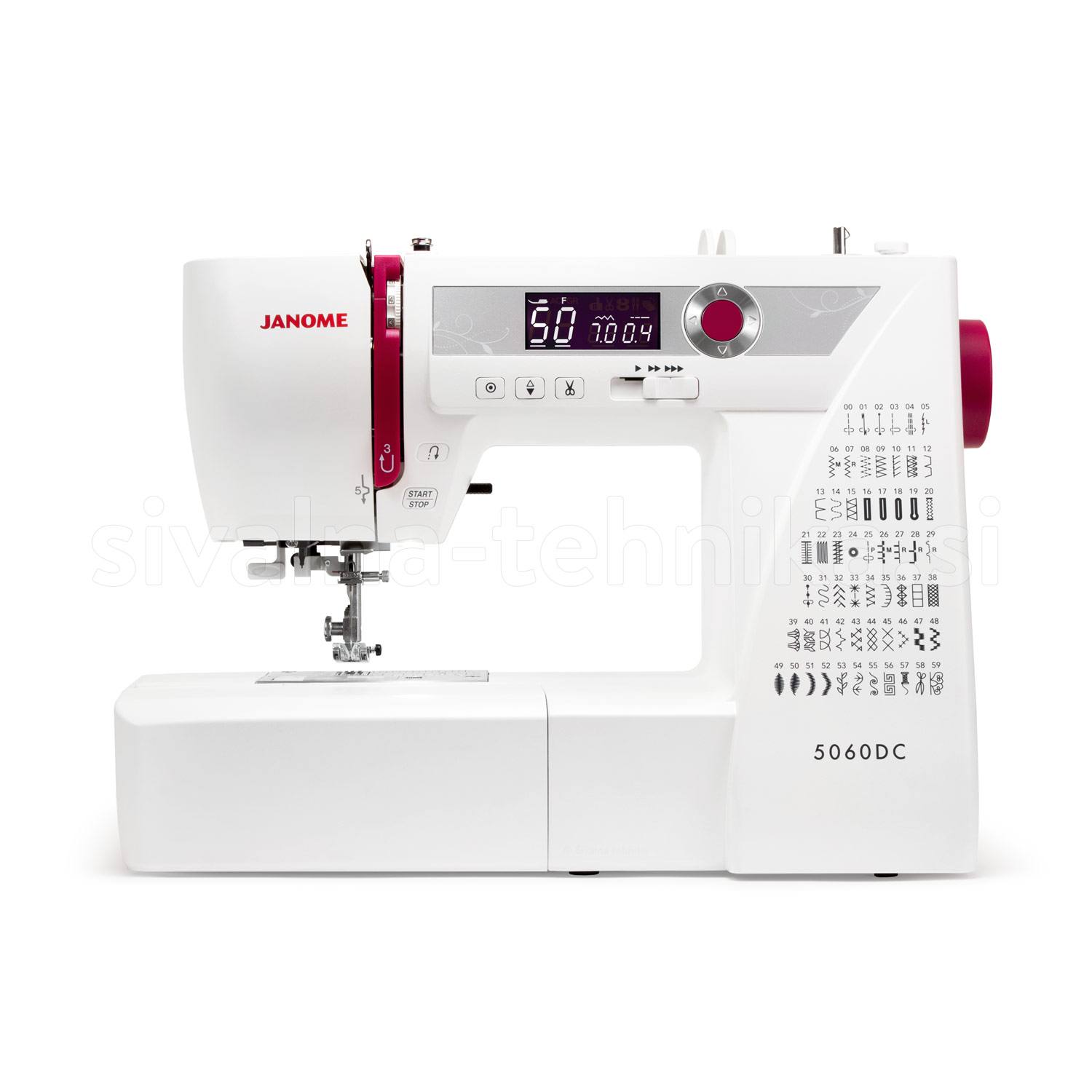 Elektronski šivalni stroj z rokavnikom in podaljšano mizo, avtomatičnim odrezom sukanca, enostavno regulacijo programov, 60 programov.