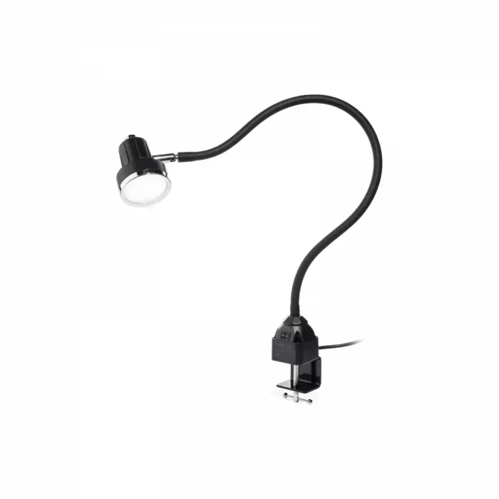 LED luč za šivalni stroj, pritrjena na mizo stroja z klemo. Stikalo za vklop in izklop pritrjeno na steblu luči. Priklop 220V. Luč ne oddaja nobene temperature. 28 LED diod za osvetlitev.