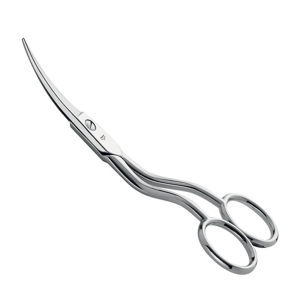 Kovinske škarje ukrviljene velikosti 6" (150 mm), konice škarij zaobljene, velik ročaj.
