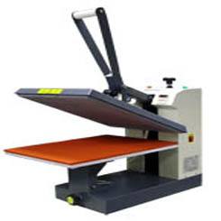 Termostiskalnica delovne površine velikosti 40*50cm, priklopna moč 2,6kW, nastavitev temperature od 50-200 "C, nastavitev časa lepljenja od 1-60 s, mehanska nastavitev pritiska in ročno zapiranje stiskalnice.