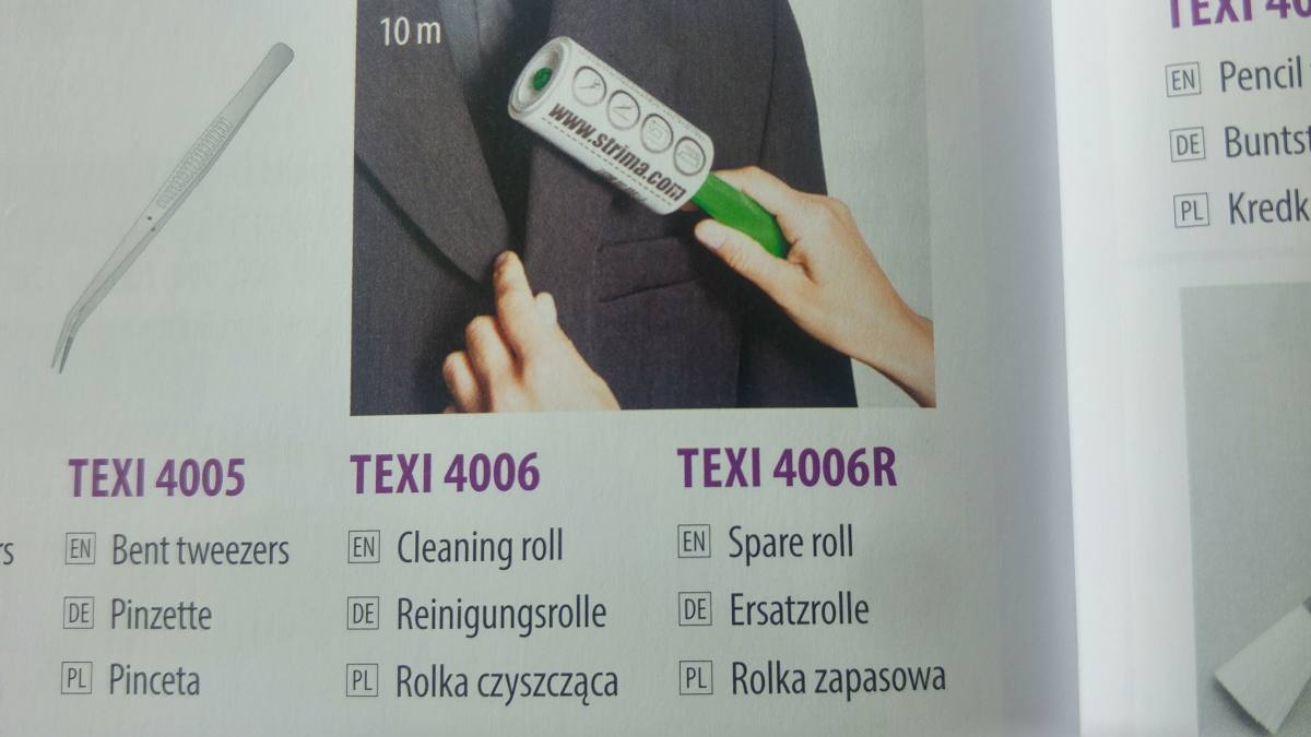 Krtača za čiščenje z ročajem. Na roli 10 metrov. Rola čisti obleke, preproge, odstanjuje prah, sukance, lase, itd. Uporaba: povaljajte po obleki, da se odstrani umazanija.