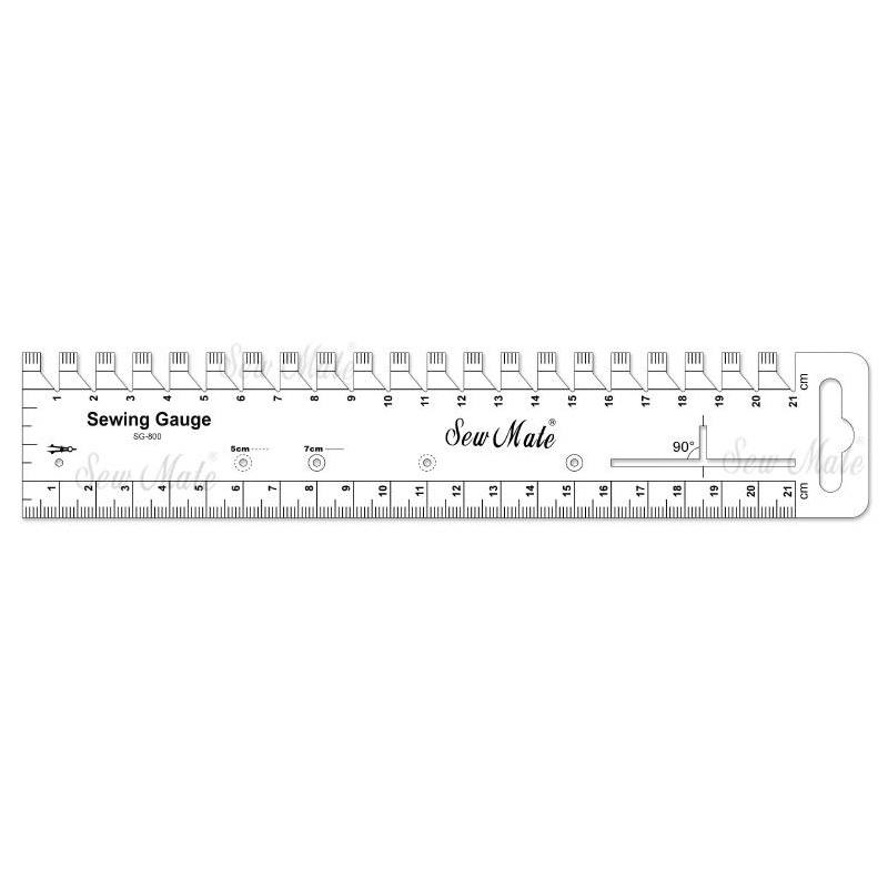 Merilo za šivanje in merilo gumbnic Sew Mate (metrična različica, št. artikla SG-800) je nepogrešljivo orodje za vse šivilje in ustvarjalce. Zasnovano za natančno merjenje dodatkov za šive, prešivanje in pletenje, omogoča hitro in preprosto določanje mer gumbnic. Njegova praktična velikost (230 x 45 mm) in trpežna plastična zasnova zagotavljata dolgotrajno uporabo ter enostavno shranjevanje v šivalni škatli.