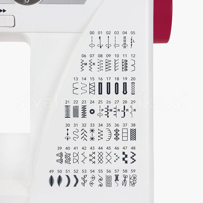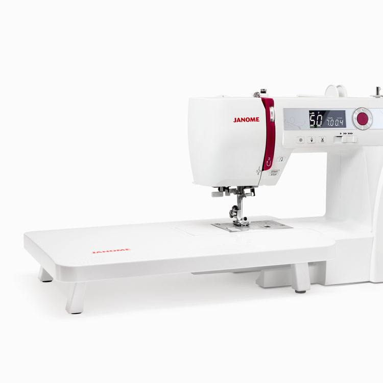 Elektronski šivalni stroj z rokavnikom in podaljšano mizo, avtomatičnim odrezom sukanca, enostavno regulacijo programov, 60 programov.