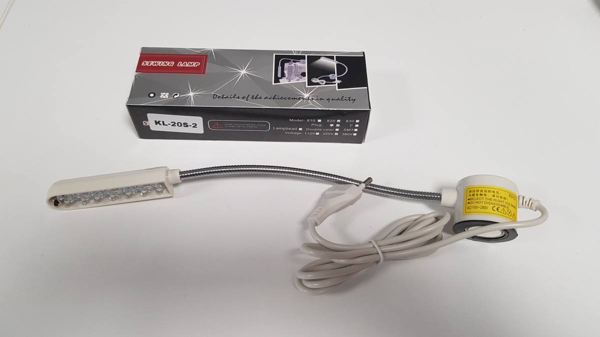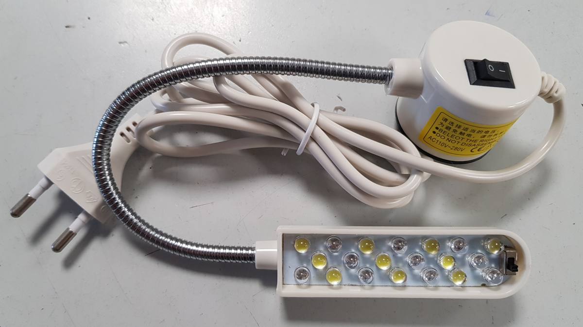Led lučka z UV svetlobo - 20 led žarnic - za šivalni stroj, prilagodljiva v vseh smereh. Vključni z magnetom za pritrditeva na katerikoli stroj .- kovinsko ohišje. Na steblu lučke stikalo za vklop in izklop. Priklop 220V. Lučka ne oddaja nobene temperature. Lučka ima 2 svetlobi - bela in modra(UV svetloba) - preklop s stikalom.